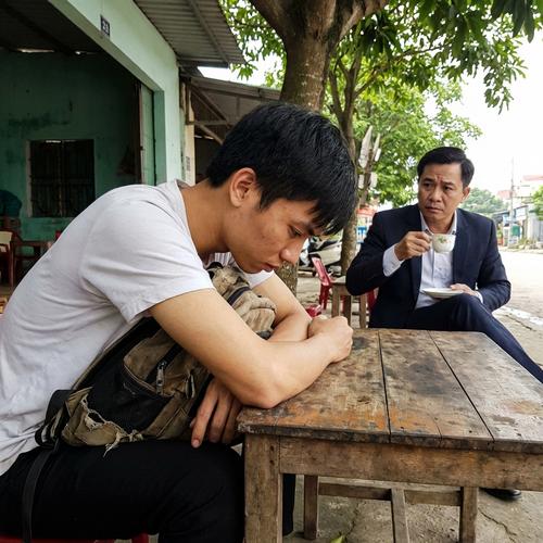 Với tách trà bốc khói trên tay, người đàn ông tìm một chỗ ngồi. Ánh mắt ông ta quét một vòng, rồi dừng lại ở chiếc bàn trống ngay đối diện Khải. Ông nhẹ nhàng đặt tách trà xuống, kéo ghế và ngồi vào. Khải vẫn không hề ngẩng mặt lên, vẫn đắm chìm trong nỗi buồn riêng.